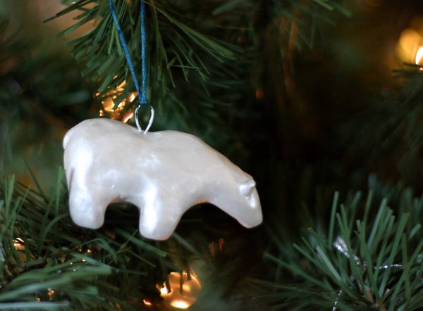 Then, while browsing Pinterest, I saw a cute polar bear ornament. Sadly, it had already sold and there wasn’t another like it. I decided to make something similar. Once I was happy with the little guy, I bent a piece of wire to make a loop and stuck it in. Following the instructions on the package, I baked the clay for about 45 minutes.