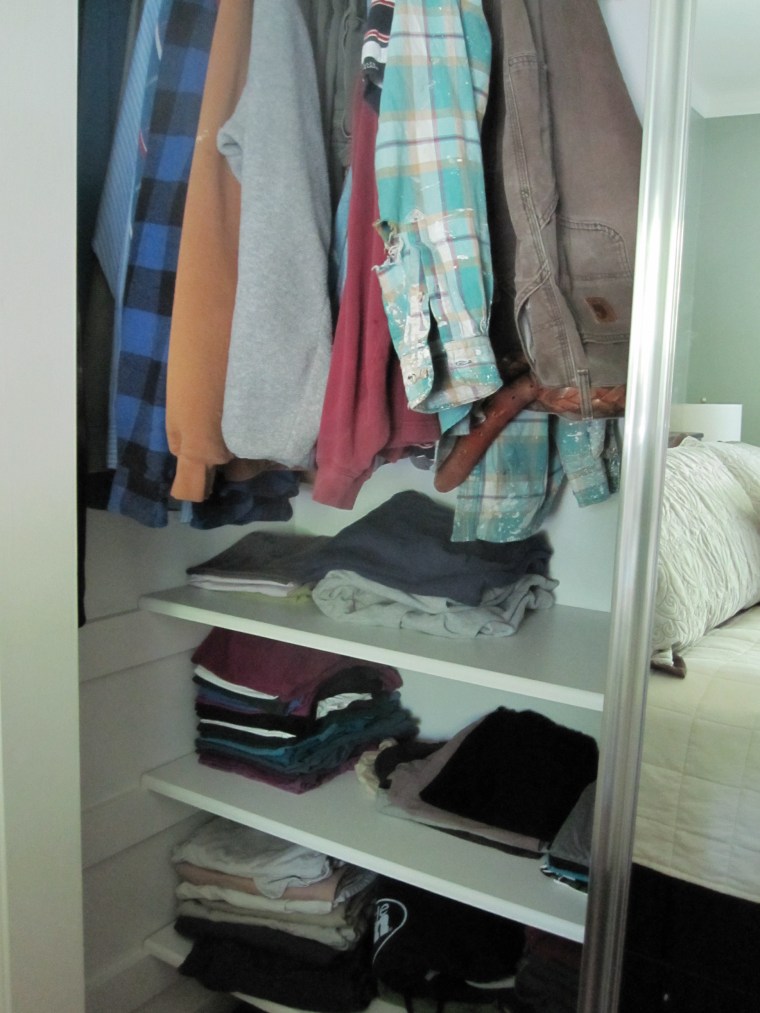 Ben and I started by throwing out everything that was past its prime or giving it away. I grouped like items together and made a shelf for each grouping.