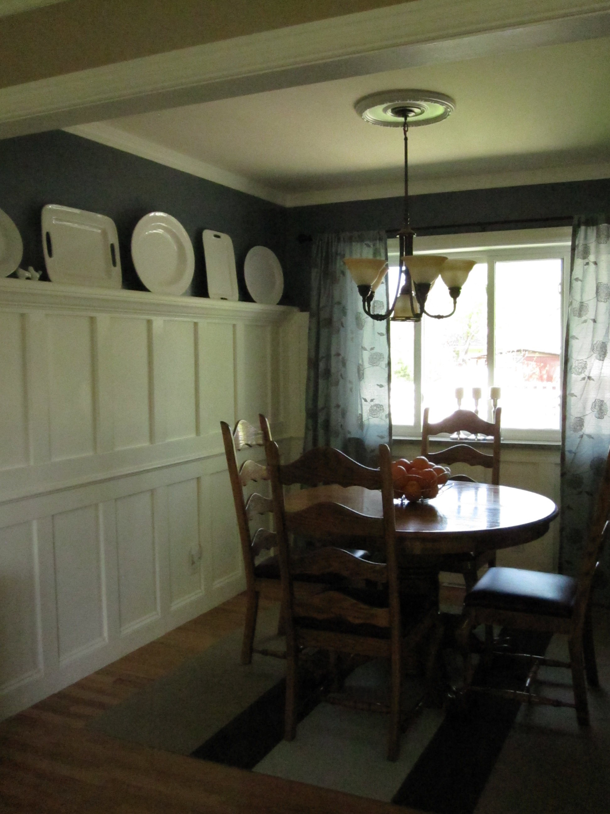 Over the weekend, we decided to repaint our dining room, completing the transformation. We used the same color as the basement, which extends up the staircase and is visible from the living room, dining room, and kitchen.