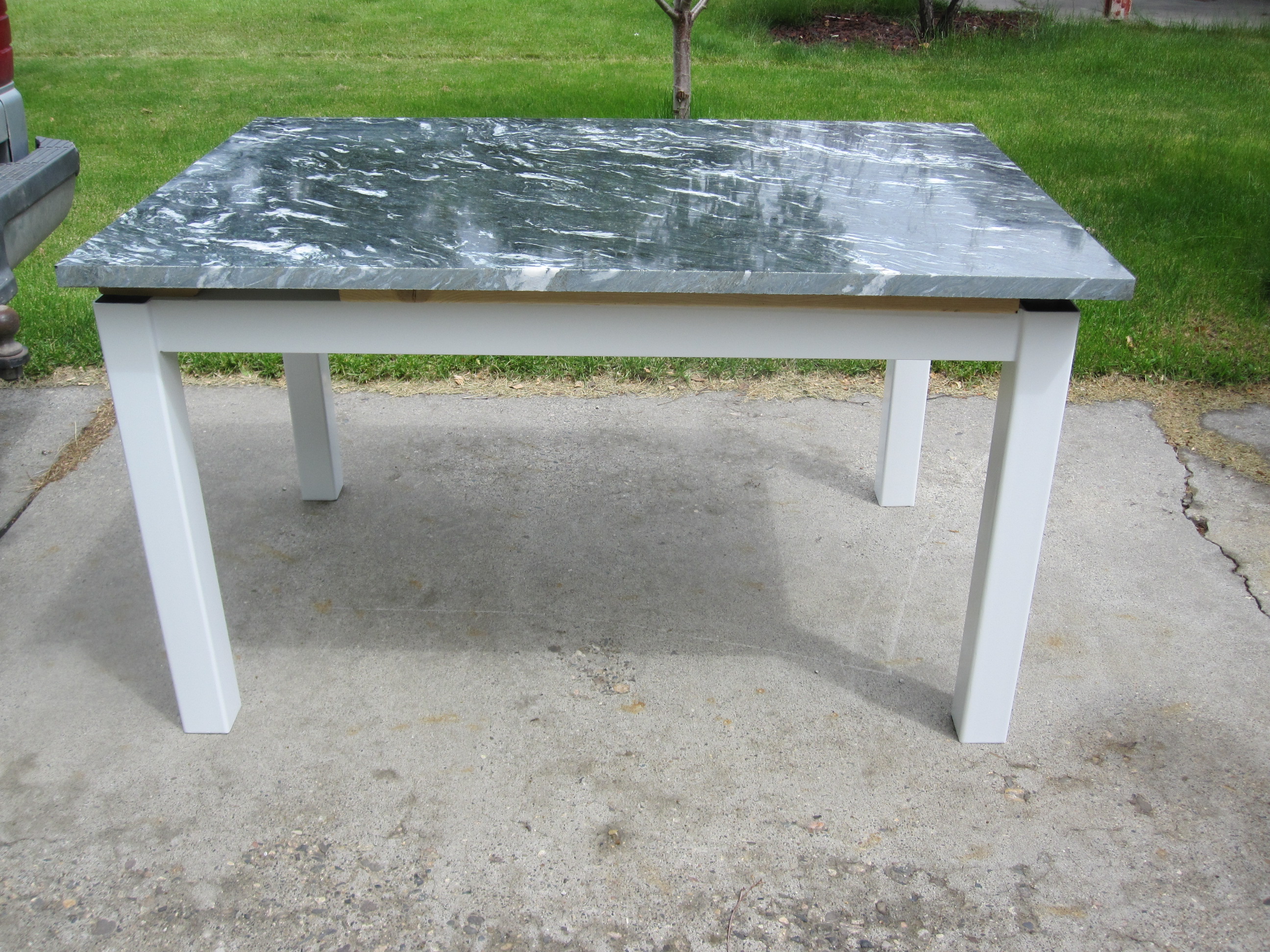 Ben and I carried in the new table base, but the top was far too heavy for me to move. With a little help from a friend, we had a new table. Enough talk, here’s the completed table: