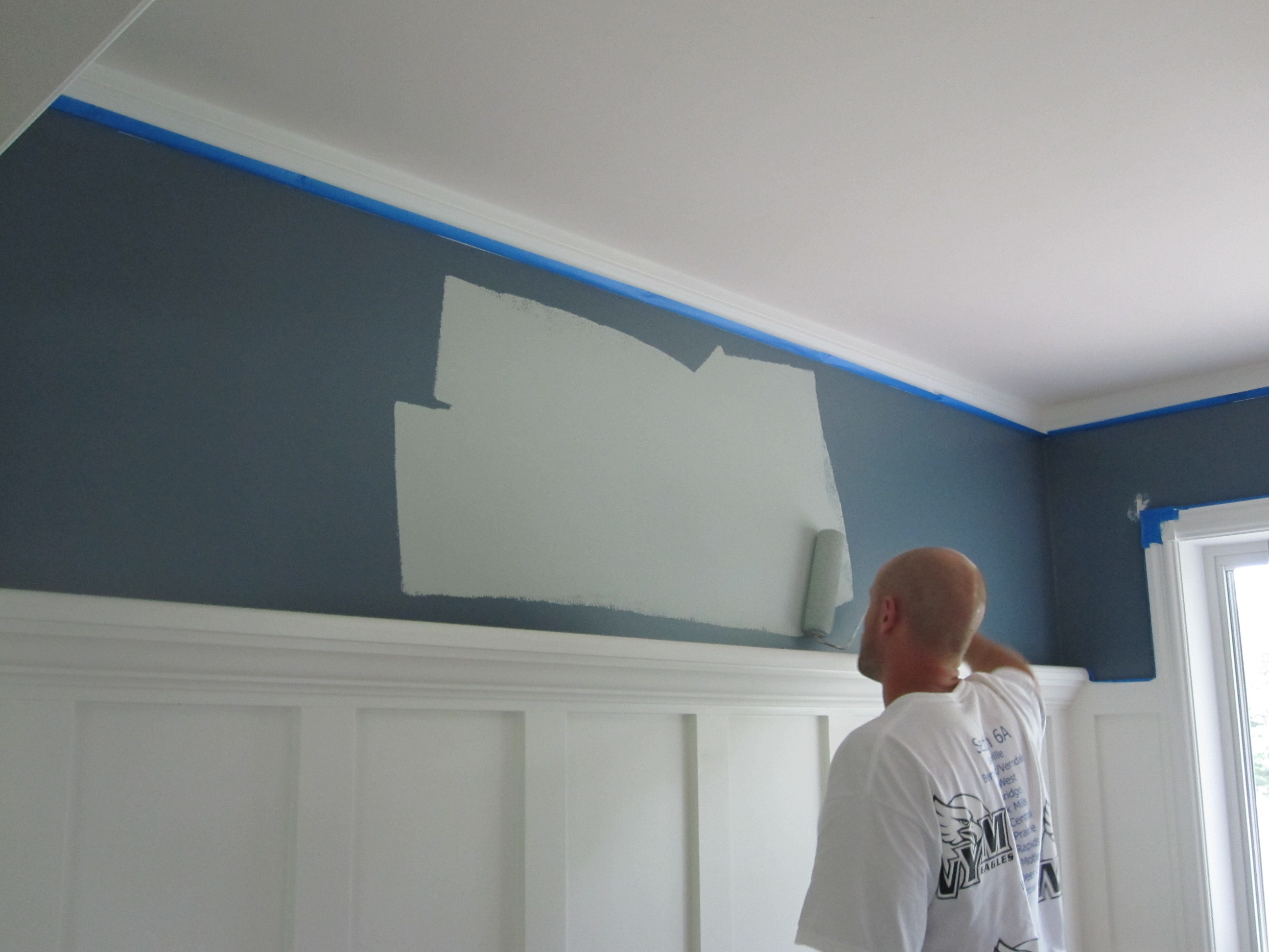 I don’t have much time to paint with a three-year old and four-month old. Fortunately, Ben is a quick painter and the area is small. It literally took about eighteen minutes to repaint. Here he is, hard at work.