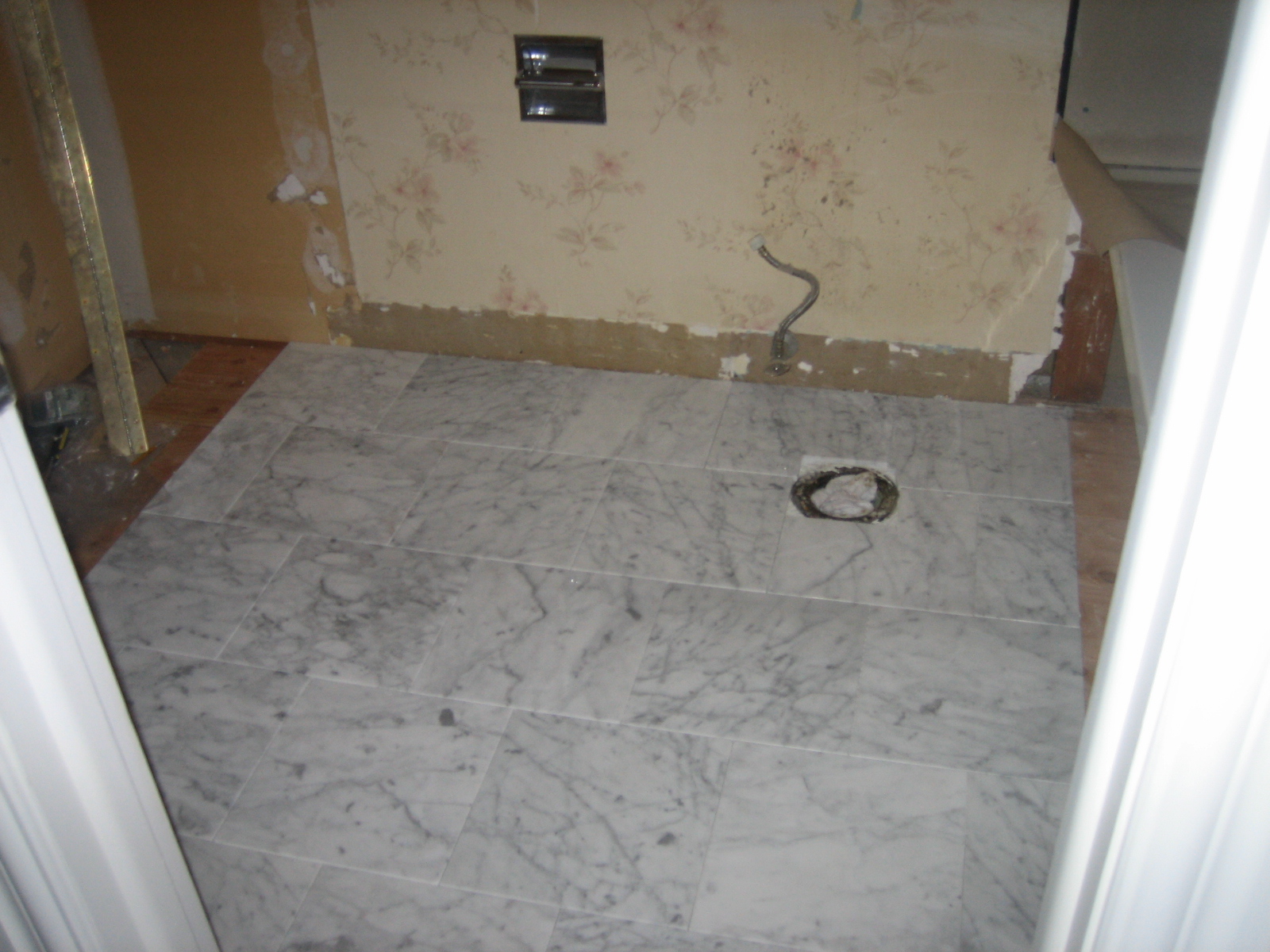 Plunge cut the sink hole slowly and carefully. You won’t be able to cut through with one pass. Slow and steady on this. Clean the dust and water off and you’ve made yourself a stone counter top.
