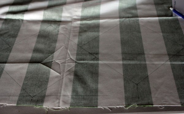 Then I placed my square template on the fabric, lining the corners up with the tick marks and traced the edges.