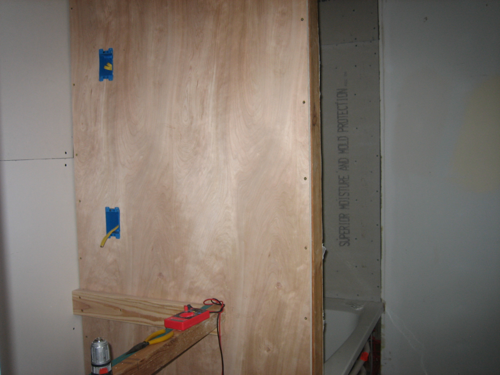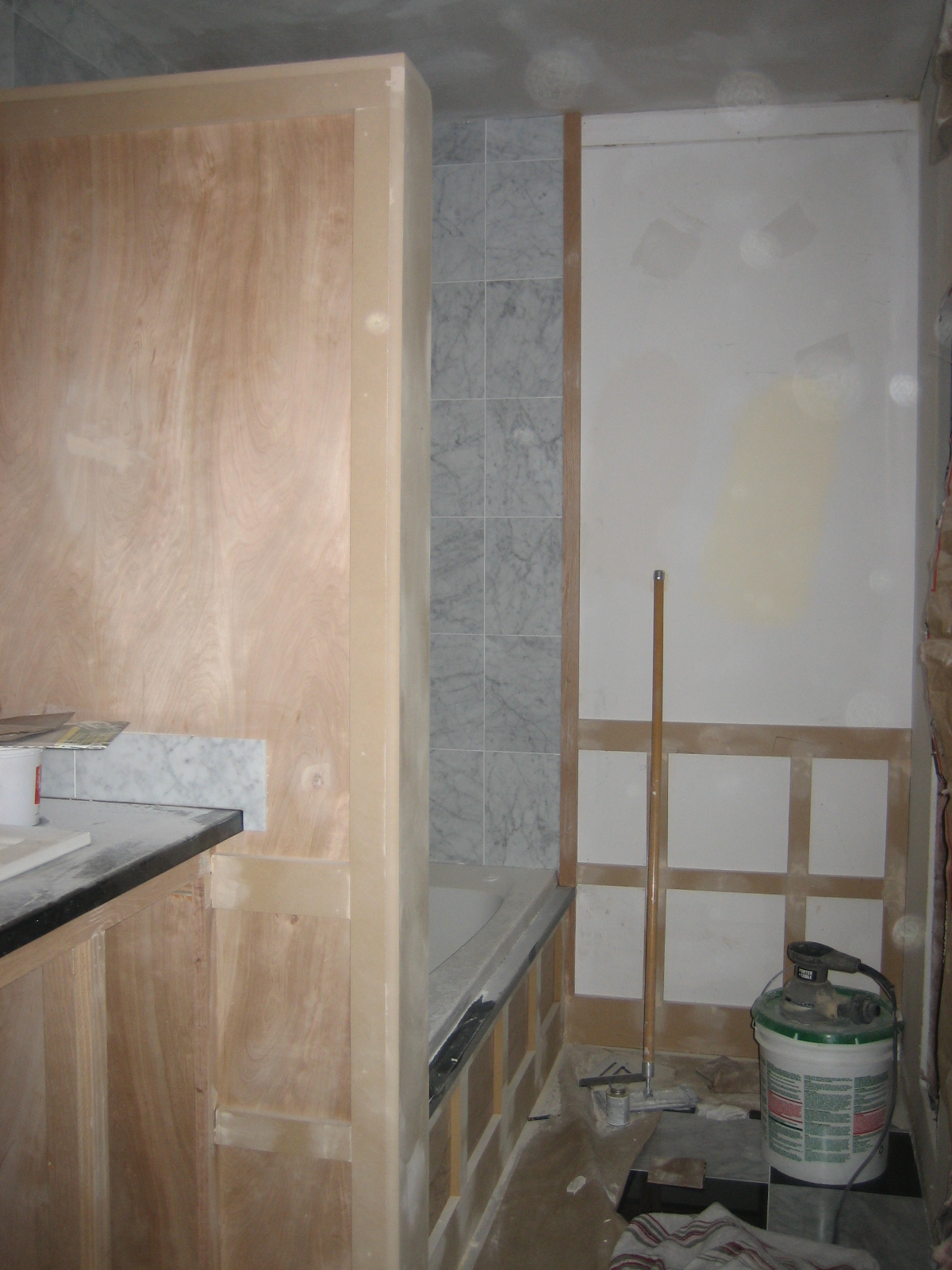 We have some finishing to do, like build, prime and paint our sliding entertainment center doors to hide the ugly toys, add shelving and make some pretty storage for DVDs, but all in good time.