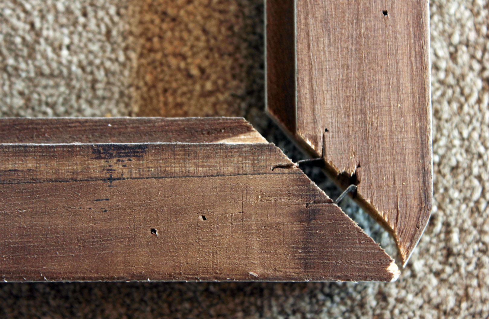 Because I already had the pictures down, I filled the nail holes. The bird, tree, and feather gallery wall fits well in the room (covering the old sconce covers), so I think I’ll rehang it.