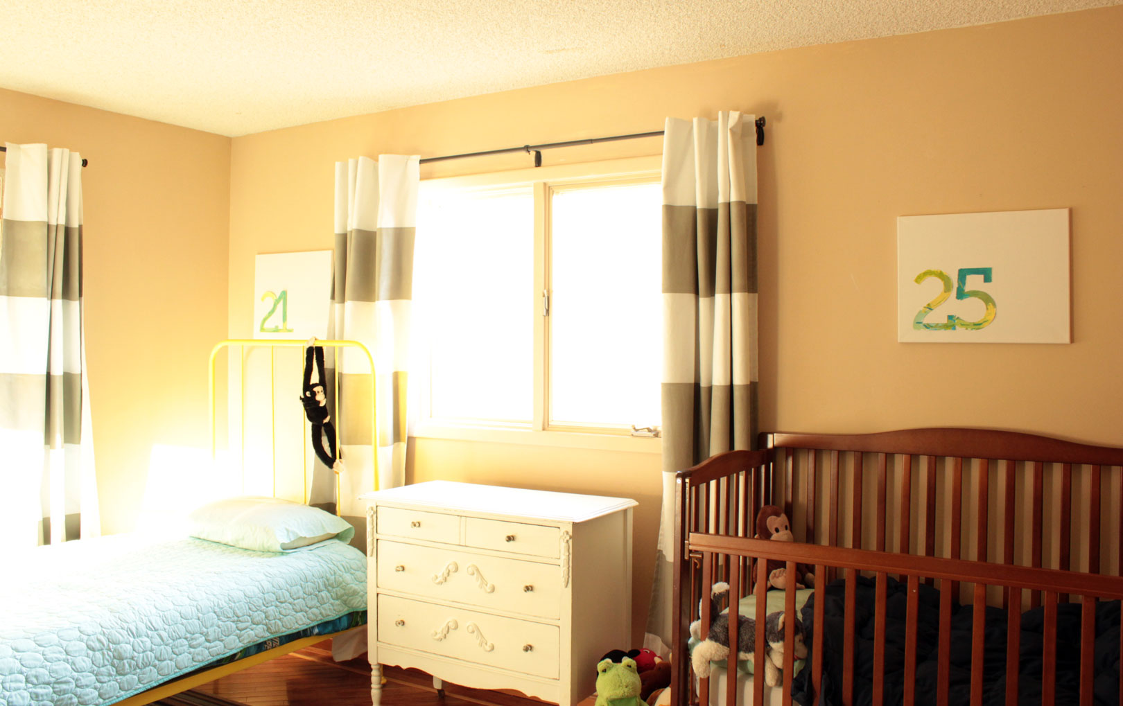 Red doesn’t often make an appearance in our house. However, I can’t get enough coral lately. Spurred by a towel I bought for the bathroom, I figured dark coral and gray could replace red nicely.