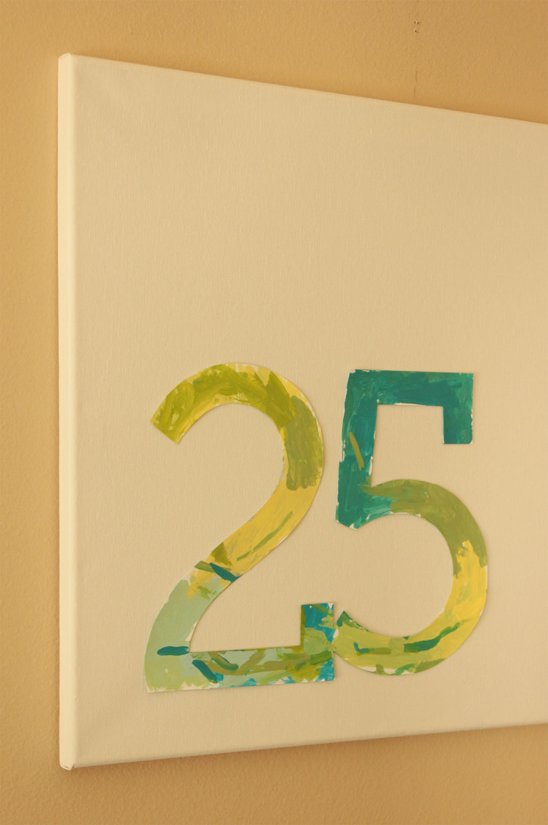 I happened to have half a yard of light gray duck cloth in my stash, so I cut it to an 18 inch square piece. Wanting a simple design, I taped off two-inch wide random stripes. Then I mixed up a batch of dark coral using apple red, orange, and a dose of pale pink. Painting went quickly, covering in one coat.