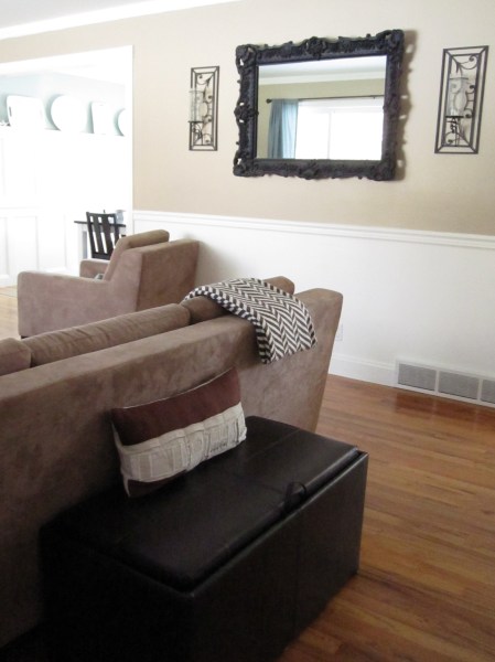 The 1200 CFM fan provides more than enough air circulation and it’s still quiet. After installing, Ben turned it on the highest setting and we could still hear the music and carry on a normal conversation between the kitchen, living, and dining areas. Two weeks ago, this is what you saw when you walked in the front door.