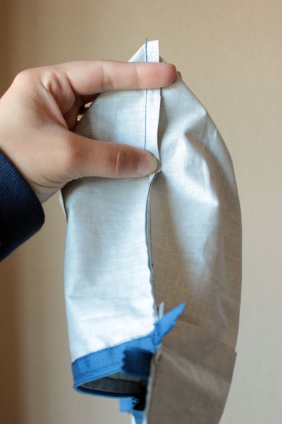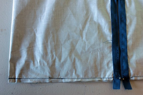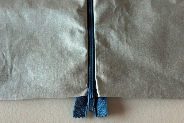 And I like the faux silk shiny backing. You know I can’t resist shiny anything. I did mess up though. For some unknown reason I put the zipper along the whole bottom. I should have cut it down and centered it, leaving fabric in the corners for crisp edges.