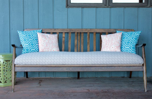 Perfect colors to tie in with the elements of the guest room. White like the trim, gray to match the doors, yellow for the walls, blue like the headboard and dresser, and green accents. But I couldn’t find a price or a place in the US selling it. Instead, I used this as inspiration to make my own fabric quilt.