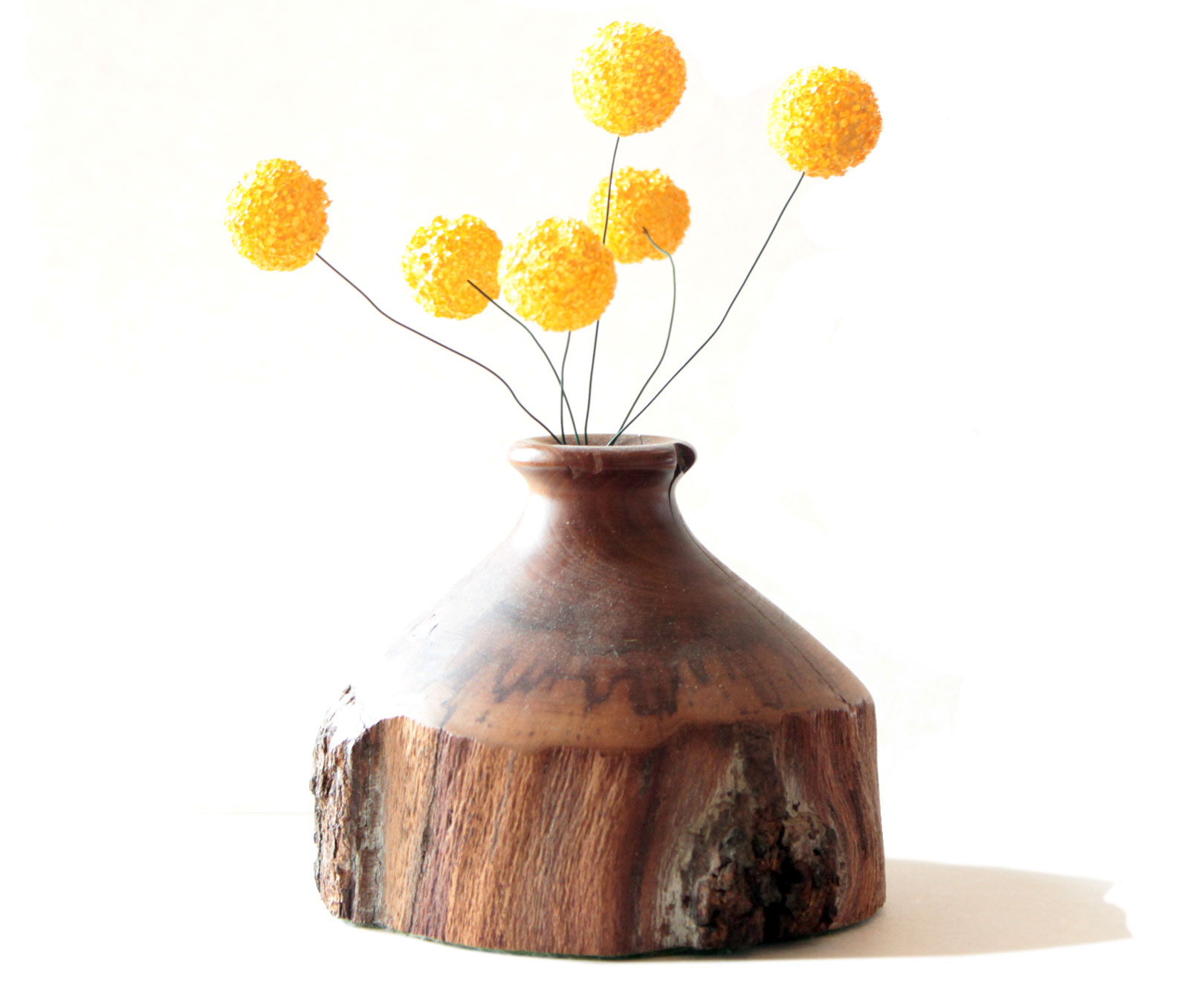 Once the balls dried, I cut pieces of floral wire to length and pushed the balls on. Voila, faux billy buttons.