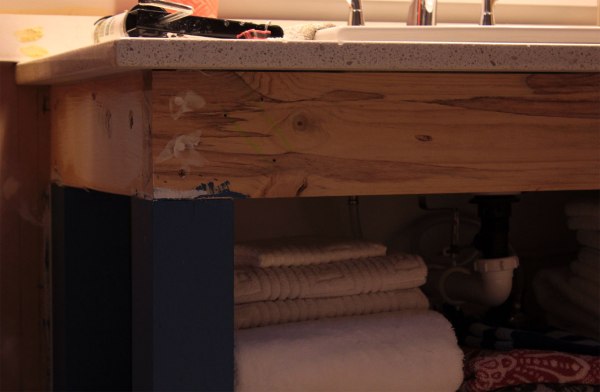 We’ve got a few little things to do, like build faux drawers for the vanity, paint the door (which means the rest of the doors in the house will get painted as well-I think I’ve landed on a color), and spray paint the fan cover.
